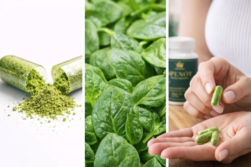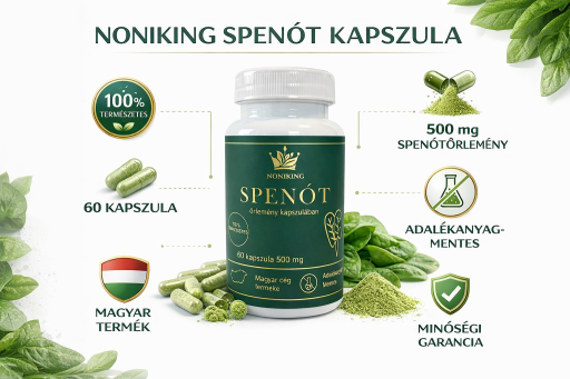Spenót (Spinacia oleracea) őrleményt tartalmazó kapszula, amely a kiegyensúlyozott táplálkozás részeként hozzájárul a szervezet vitamin- és ásványi anyag bevitelének kiegészítéséhez.